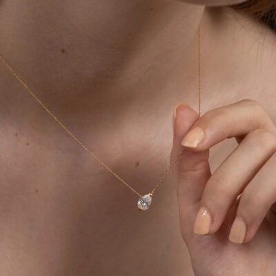 Behold the facet necklace from our INFINITY Collection: a 1ct pear-shaped diamond set in a design that illuminates its beauty from every angle. Elegance redefined. Handcrafted by artisans in Kofu, Japan.