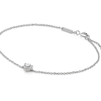 Meet your new go-to everyday jewelry accessory. Available in 10k white or yellow gold, this minimalistic bracelet will compliment any outfit whether worn solo or stacked with other bracelets for a layered look. The ¼ carat stone is graded at VS+ clarity, Very Good cut, Near Colorless and made from 100% renewable wind energy at our lab in Portland, Oregon.