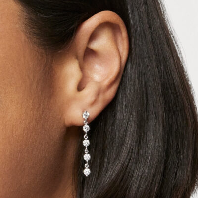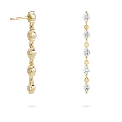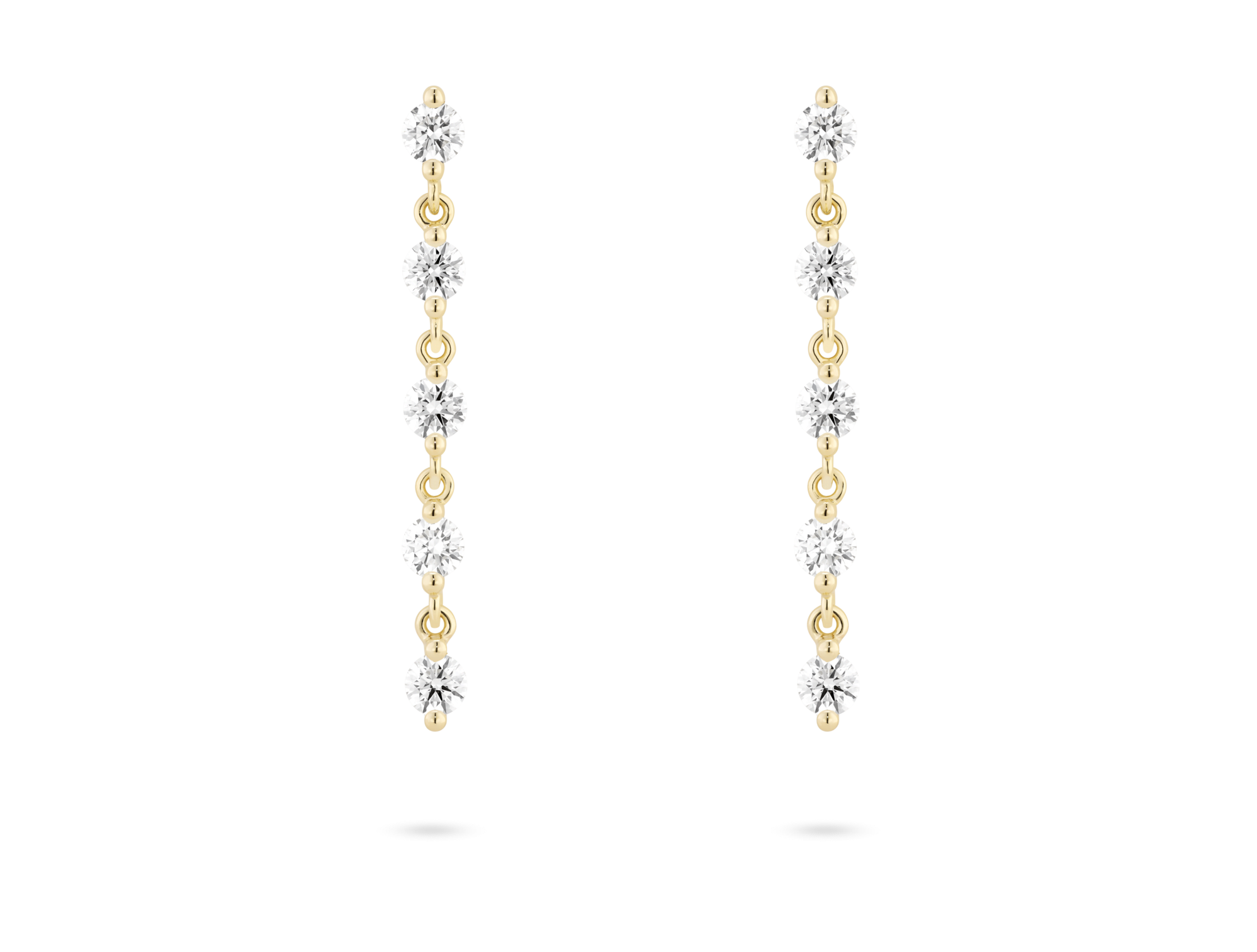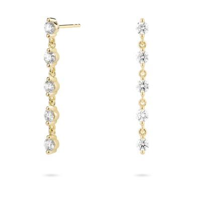 Handcrafted in 14k gold and featuring 1.5ct. tw. round brilliant cut lab-grown diamonds these drop earrings are a real party essential. Each 0.15 carat stone is graded at VS+ clarity, Very Good cut, Near Colorless and grown from 100% renewable energy.