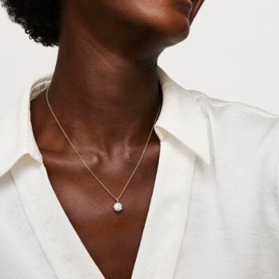 Effortlessly elegant, this 2-carat stone on a diamond cut chain is perfect for adding a touch of glam to any outfit. With each of our white stones being VS+ clarity, Very Good cut and Near Colorless, you’ll be shining just as you should! The bale pendant allows you to tailor your look — choose to have your stone on a small choker-style chain or a longer chain to create your desired layered effect. The versatility makes this necklace a must-have for anyone who loves to experiment with their style.